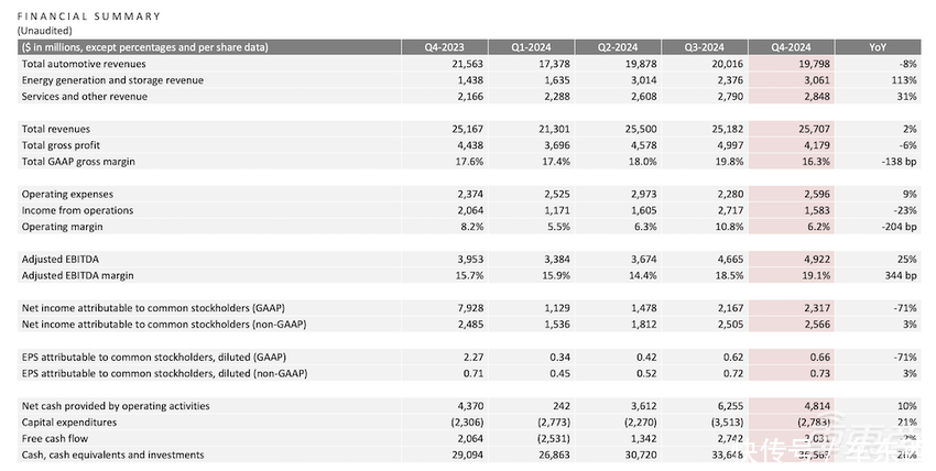 车东西1月30日音问,就在刚刚,特斯拉发布了其2024年第四季度功绩说明。