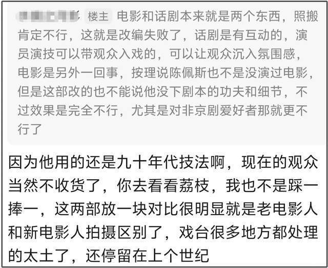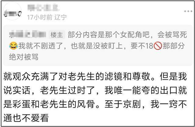 然则一朝《戏台》隆重上映,就要靠近更多查验,其中老一辈关于腐化糟粕的无语痴迷、关于女性毫无尊重的开黄腔辱弄,可谓精确踩中当代不雅众雷点
