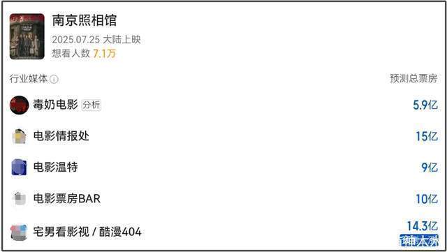 倒是从8月提档到7月的《南京影相馆》肃静有了起势的好奇羡慕,预报片口碑可以,点映票房也起来了。