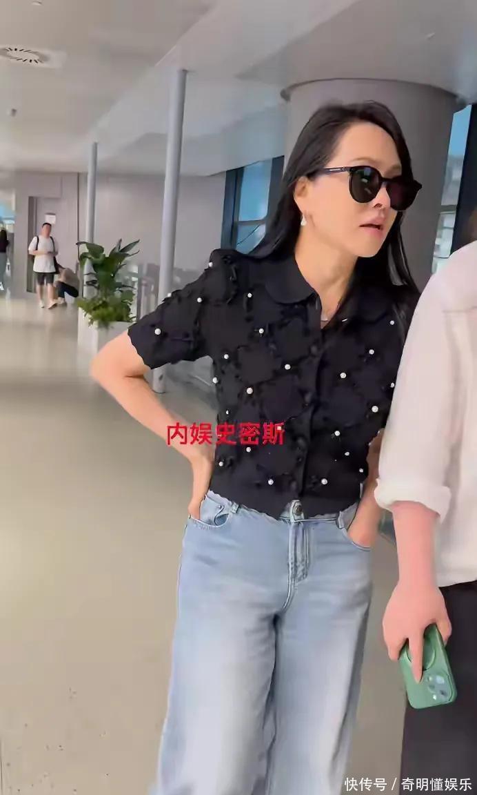机场里的伊能静挺有范儿,黑框墨镜一戴,玄色polo领上衣配牛仔裤,看着干练得像刚开完会的女雇主。步子迈得快,还时时时跟附近的助理说几句使命上的事。虽说没化妆,路东谈主镜头里的她皮肤景色还算能打,即是嘴角边暗暗爬了点岁月的印迹,但少量不影响全体气质,反倒有种当然的舒展感。