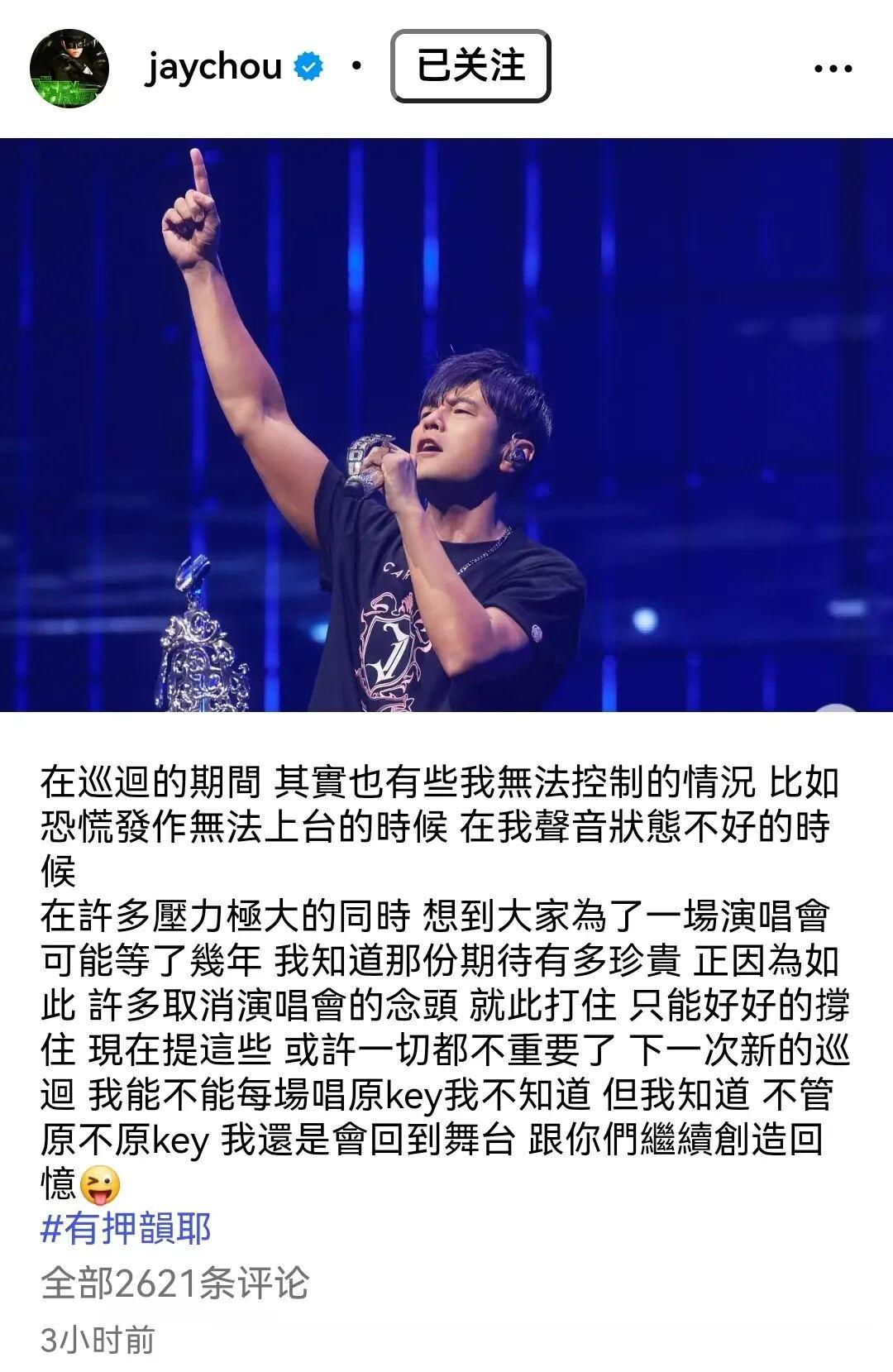 他说,“念念到环球为了一场演唱会可能等了几年,我知谈那份期待有多罕有,正因为如斯,许多取消演唱会的念头就此打住,只可好好地撑住……下一次新的巡回,我能不成每场唱原key我不知谈。但我知谈,岂论原不原key,我如故会回到舞台跟你们持续创造回忆。”