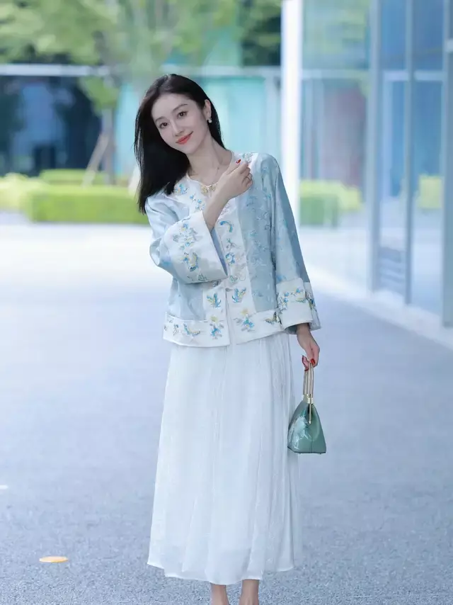 这两天看到女明星“陈乔恩”的新穿搭造型,确乎把我给惊艳到了。用一款雾霾蓝的新考取外衣,搭配上一条橘黄色的伞状容貌半身裙,聚积羊毛鬈发型,优雅大气,完全看不出是 45 岁的中年女性,说她年青 20 岁齐不为过。