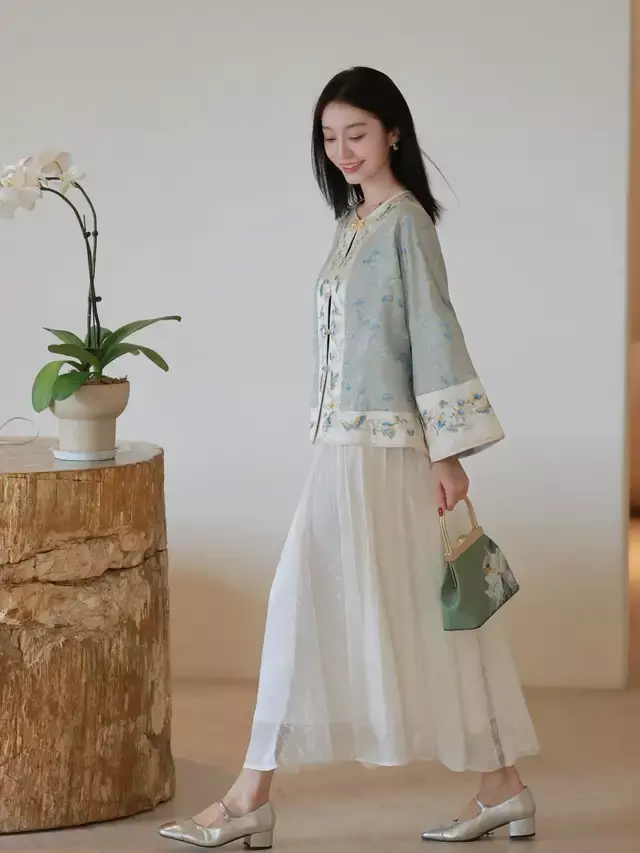 举例,上头这种经典容貌的印花新考取外衣,再搭配上一条半身裙,就相比适应中年女性穿搭,显得很昂贵,然而年青貌好意思的女生穿了就会显老显土。