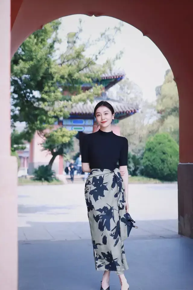 举例,上头这件玄色的短袖毛衣,搭配上印花的半身裙,脚上穿了一对浅口的高跟鞋,穿的时候把内搭的一稔塞进裙子内部,就能很好的变成高腰线,使得穿搭者显高显瘦又暖和多礼。不外外出的时候千万不要这样单穿,我们可以再加上一件新考取的短外衣,会更好御寒。