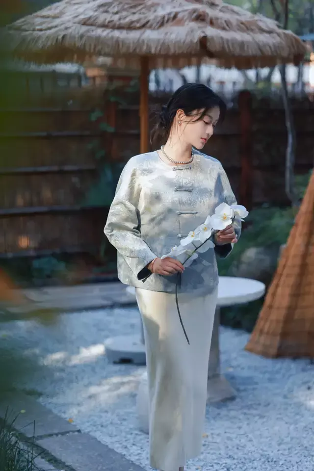 举例,上头这一件印形容貌的新考取短外衣,搭配上白色的散装半身裙,再穿银色粗跟单鞋,这样的穿搭征服莫得哪个女生能拒却的了,贵气又优雅。