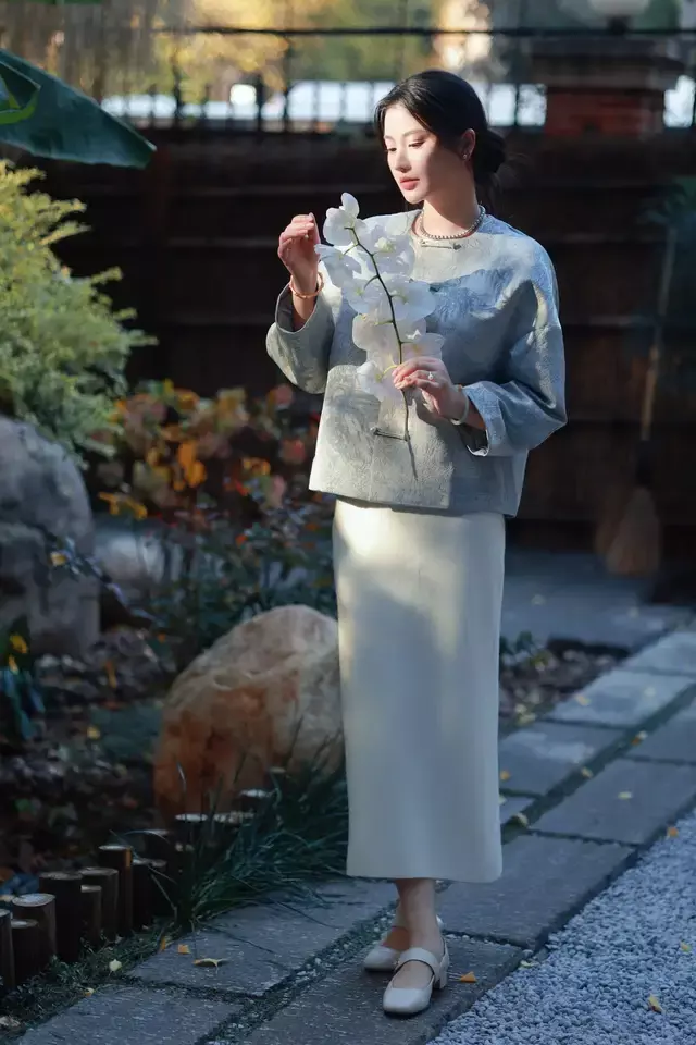 如若你确切念念要穿新考取造型,在暖和南边的城市可行,比如在海南省大要是云南昆明这样四季如春的城市,白日出太阳的时候,完全可以像上头这位前锋达东谈主一样,用圆领的新考取外衣搭配上一条直筒半身裙,脚穿玛丽珍鞋,优雅又贵气,还很修饰躯壳。