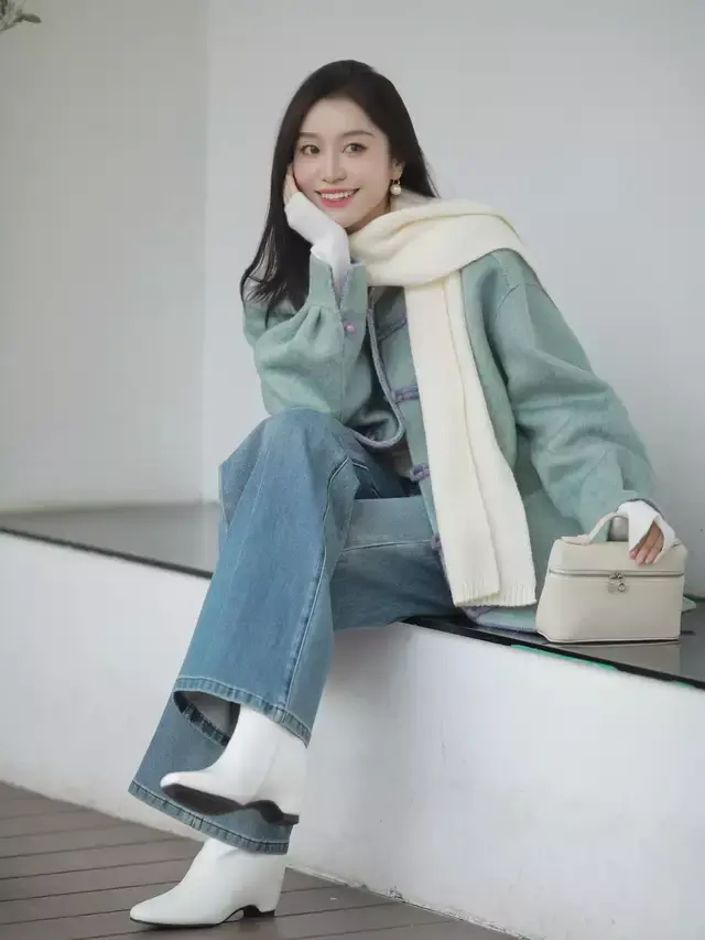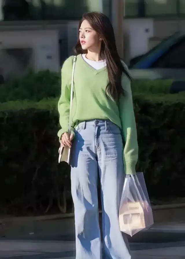 女明星赵今麦的毛衣穿搭很值得我们素东谈主学习鉴戒,用一件薄荷绿毛衣叠穿白色 T 恤,加上一条遮肉显瘦的牛仔裤,崭新减龄又前锋。