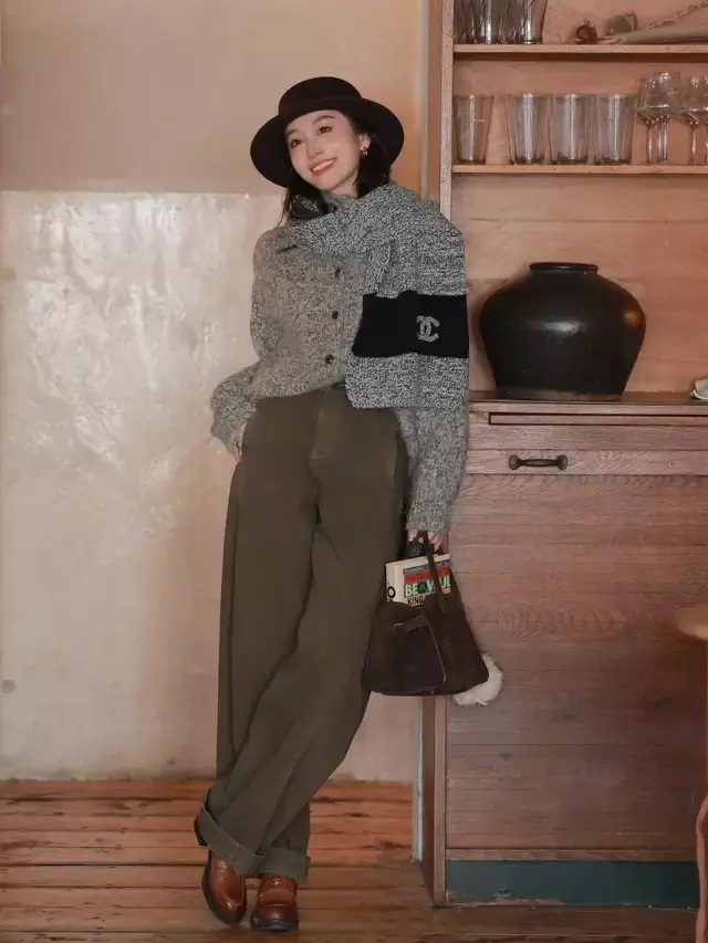 念念要呈现出轻熟风相比干练的造型,我们可以接纳皮鞋乐福鞋来搭配。上头这一对棕色的皮鞋,搭配上一条地面色系阔腿裤和灰色的真挚开衫,加上棕咖色的宽檐帽,这样的打扮简陋 get 到轻熟风的气质,通勤又端淑。