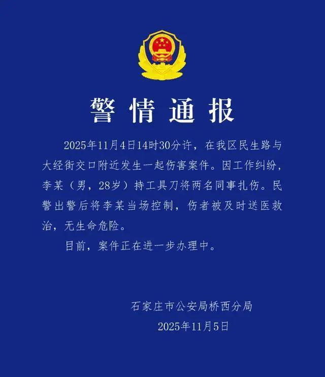 开云体育(中国)官方网站石家庄警方:须眉因责任纠纷抓器用刀将两名共事扎伤,被就地放手-Kaiyun网页版·「中国」开云官方网站 登录入口