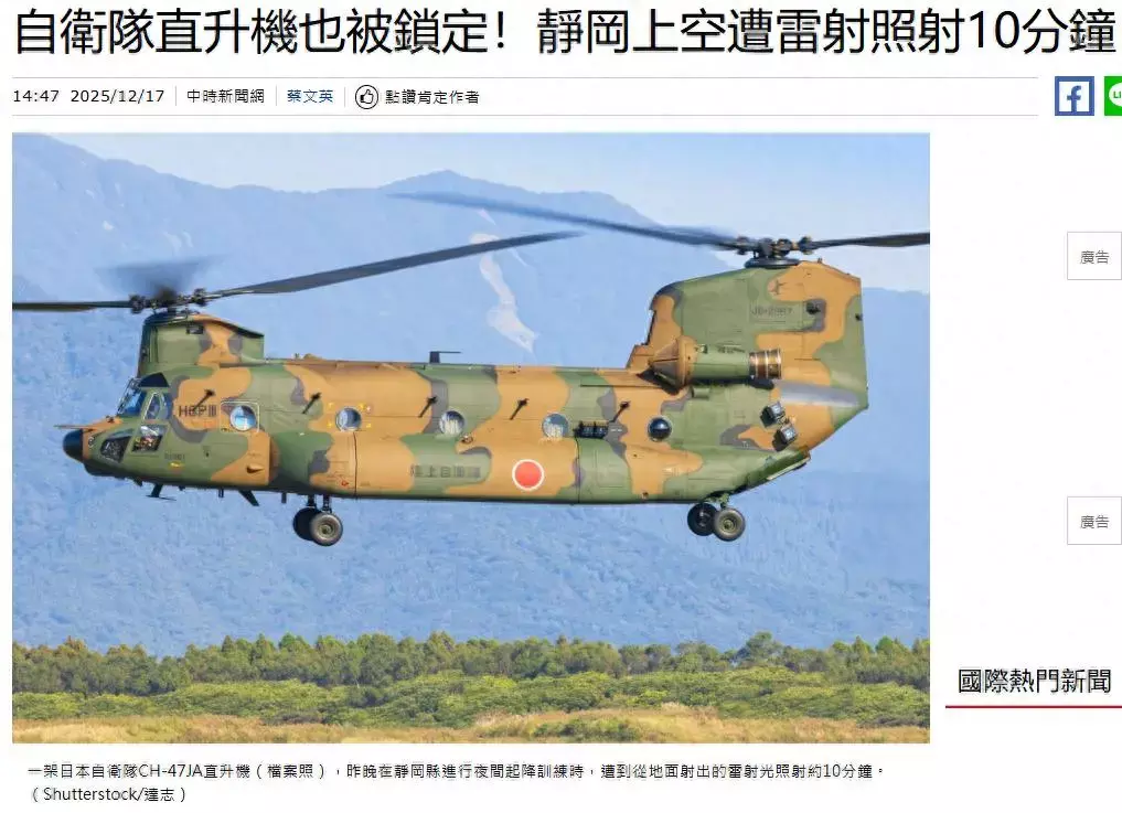 证据干系报谈,这起事故发生在12月16日晚上8点掌握,那时日本陆上自保队第106遨游队的一架CH-47JA直升机在进行夜间起降磨练时碰到了激光映照。值得运气的是,遨游员和机组东谈主员莫得受到伤害,直升机也竣工无损。关联词,日本自保队并未因此掉以轻心,反而将此事飞腾为安全威迫,并坐窝报警处理。这种垂死气象标明了日本自保队在面对潜在威迫时的高度警醒性。